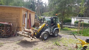 Radlader inkl. Schaufel, Palettengabel, Kehrbesen, Rangierhaken für Anhänger, Heckenschere + Bediener, Diesel nach Verbrauch. |